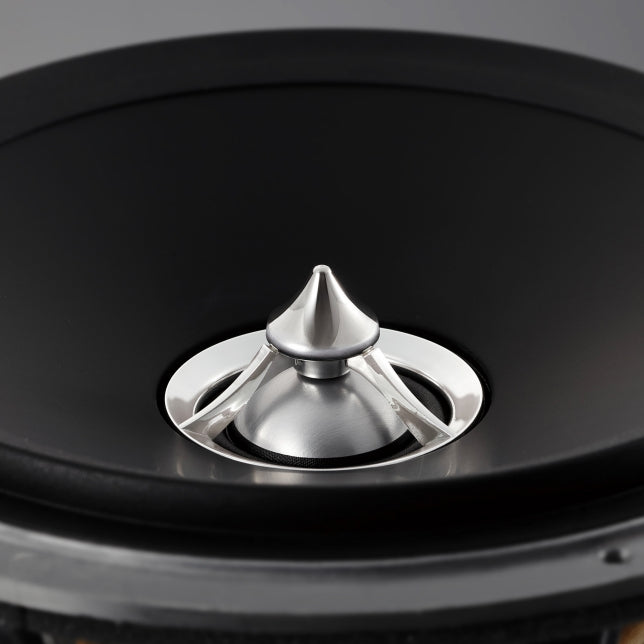 The originally shaped acoustic plug is positioned on the front side of the tweeter diaphragm and provides a high-resolution sound reproduction capability and a wide sound stage. The tip of the Linear Phase Plug is made from a high-modulus, high-density brass material. It prevents the plug from vibrating unnecessarily due to the effect of the vibration of the mid-range unit, thus delivering clear and low-distortion sound.